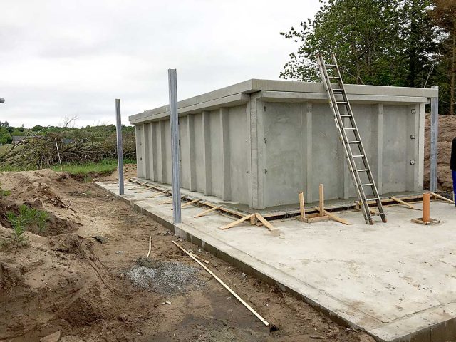 Rentvandstanken er etableret. Den skal være inde i bygningen.